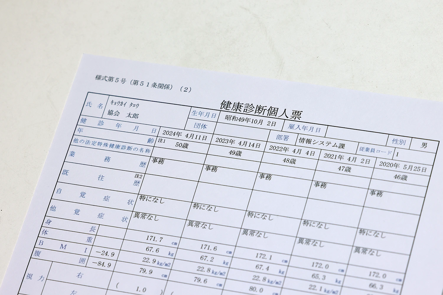 アフターフォロー詳細はこちら従業員様個々人の健診結果をデジタルデータで管理し、個人票(事業所控えの結果)を発行しています。また、健診結果分析シートを活用し事業所様の健康づくりのサポートをさせていただいております。