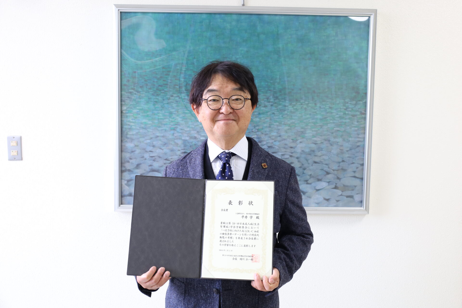 1月10日~11日、東京都千代田区の都市センターホテルにて開催された第59回日本成人病(生活習慣病)学会学術集会において、当協会の中央健診センター長である平井学医師が、会長賞を受賞しました。 演題「一次予防に向けた高LDL-C血症の時系列動態の考察」 LDLコレステロールは、本来、体に欠かせない成分であるにもかかわらず、「悪玉コレステロール」と呼ばれてきました。 この呼び方は本当に妥当なのかを検証するため、高知県の健康診断データを用いてLDLコレステロールの実態を分析しました。 その結果、LDL値の変化の背景や性差の存在など、従来のイメージとは異なる側面が見えてきました。本発表では、その知見を紹介します。 ▼発表資料はこちらからご覧いただけます。 ※無断利用はご遠慮ください。※一般公開用に若干加工しています。