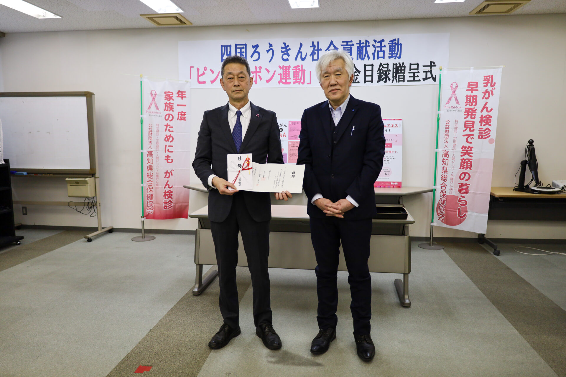 四国労働金庫高知営業本部様からピンクリボン運動へご寄附をいただきました。